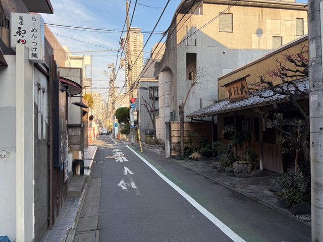 風情のある鰻屋さんがあったり、おいしそうなラーメン屋さんがあったり。